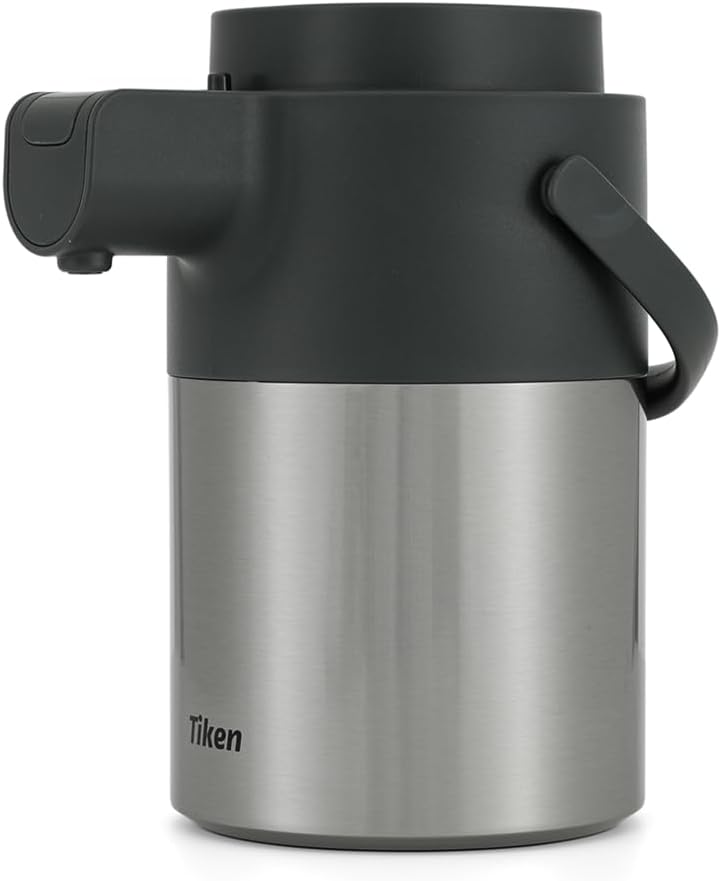 - Effortless Pump Action Dispensing: Simply press down on the pump at top of Tiken coffee dispenser, and the steaming hot beverage pours out. The enhanced pump mechanism and large capacity makes this thermal coffee carafe much easier and more convenient for serving multiple people without a hassle. No mess, no lifting the entire coffee carafe.