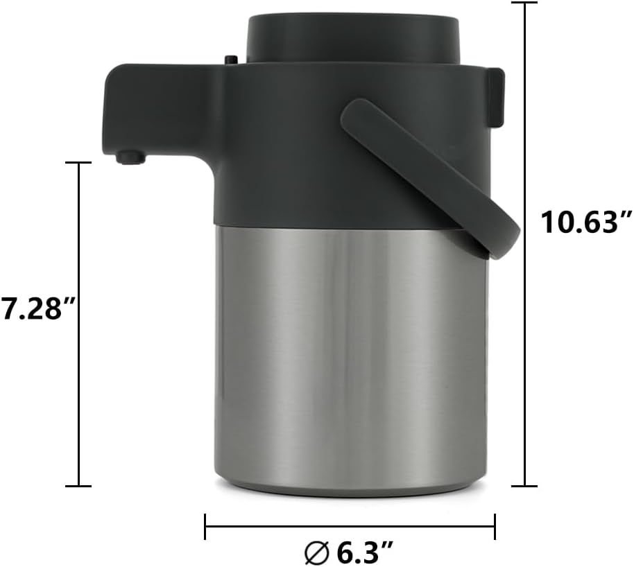 - Sleek Design and Sturdy Construction: Made from high-quality 18/8 stainless steel interior and exterior, this stylish airpot coffee dispenser with pump is sturdy and well insulated. With the sleek and modern look, the hot drink dispenser is a must-have addition to your coffee setup. It also features a safety lock that helps prevent drips and overflow.